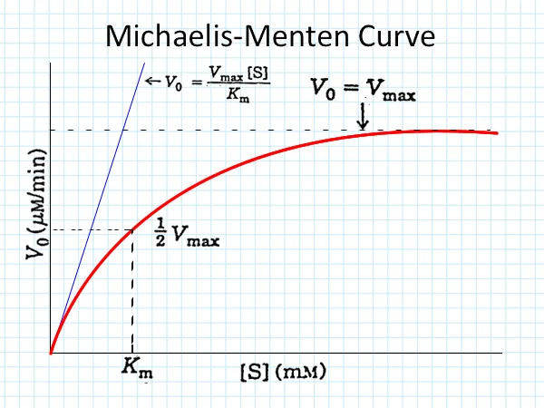 - Vmax: Maximum rate when all enzyme active sites are occupied by substrate.