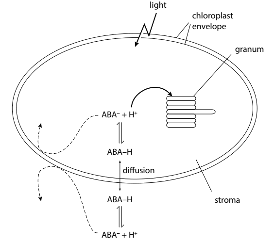 - The non-dissociated form, ABA-H, is capable of moving in and out of chloroplasts, while the dissociated form, ABA−, cannot cross chloroplast membranes.